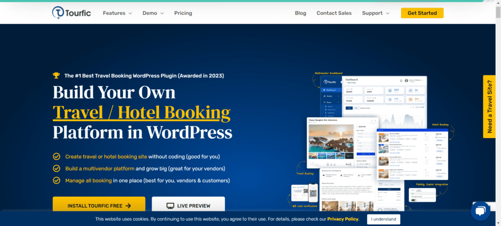 This Hotel / Tour booking WordPress plugin empowers your customers to create accounts and secure bookings for hotels, apartments, and tour packages directly through your website. With Tourfic, launching a website similar to Booking.com, Agoda, Hotels.com, and Airbnb is possible and straightforward.